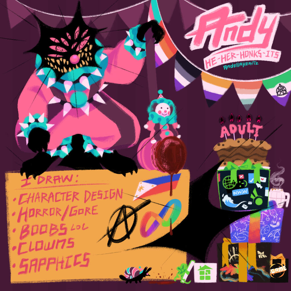 Im a neurodivergent, asexual lesbian, nonbinary transmasc, filipino, therian/otherkin, anarchist artist who goes by he/her/honks/its☻I like to draw: